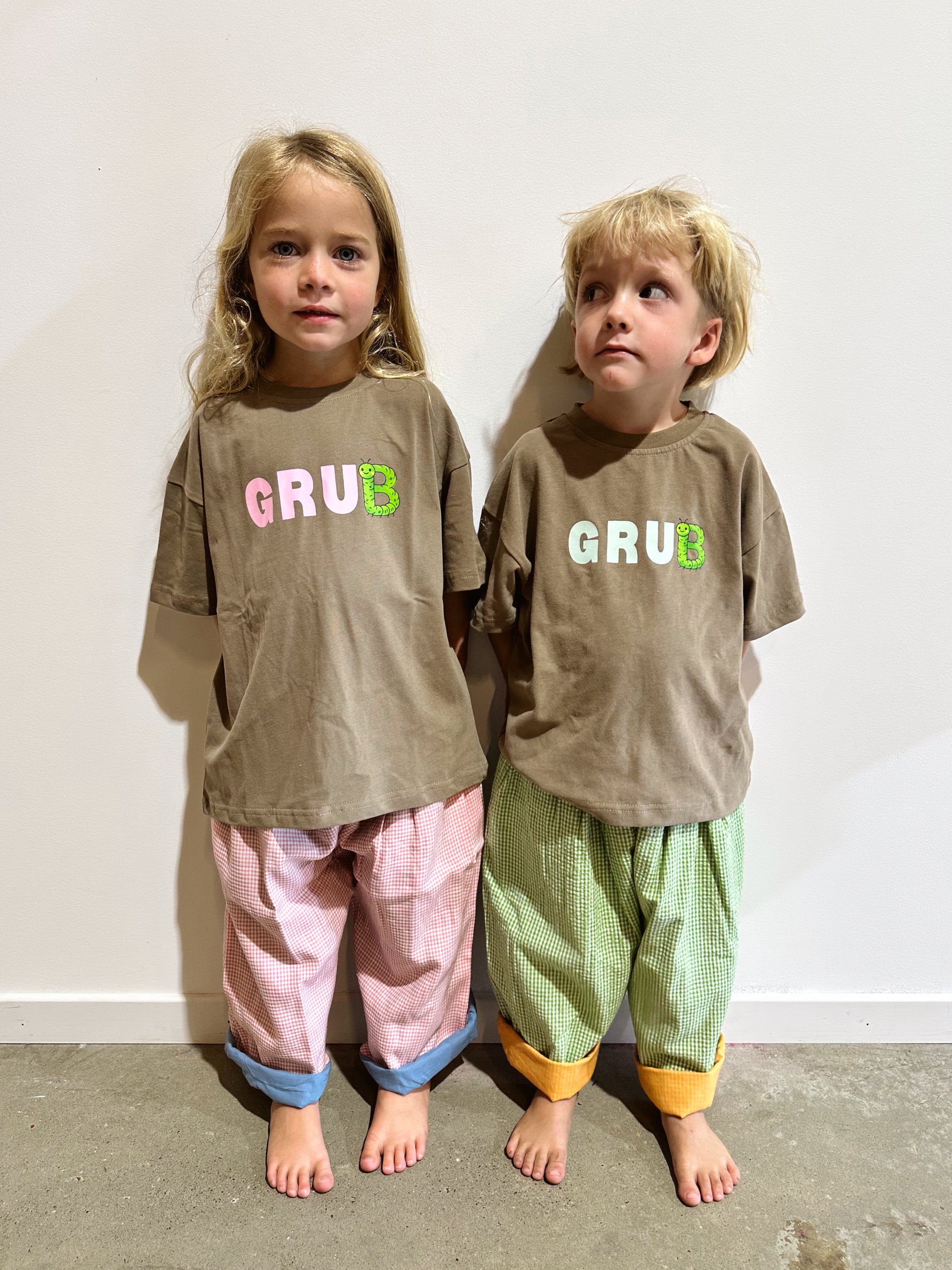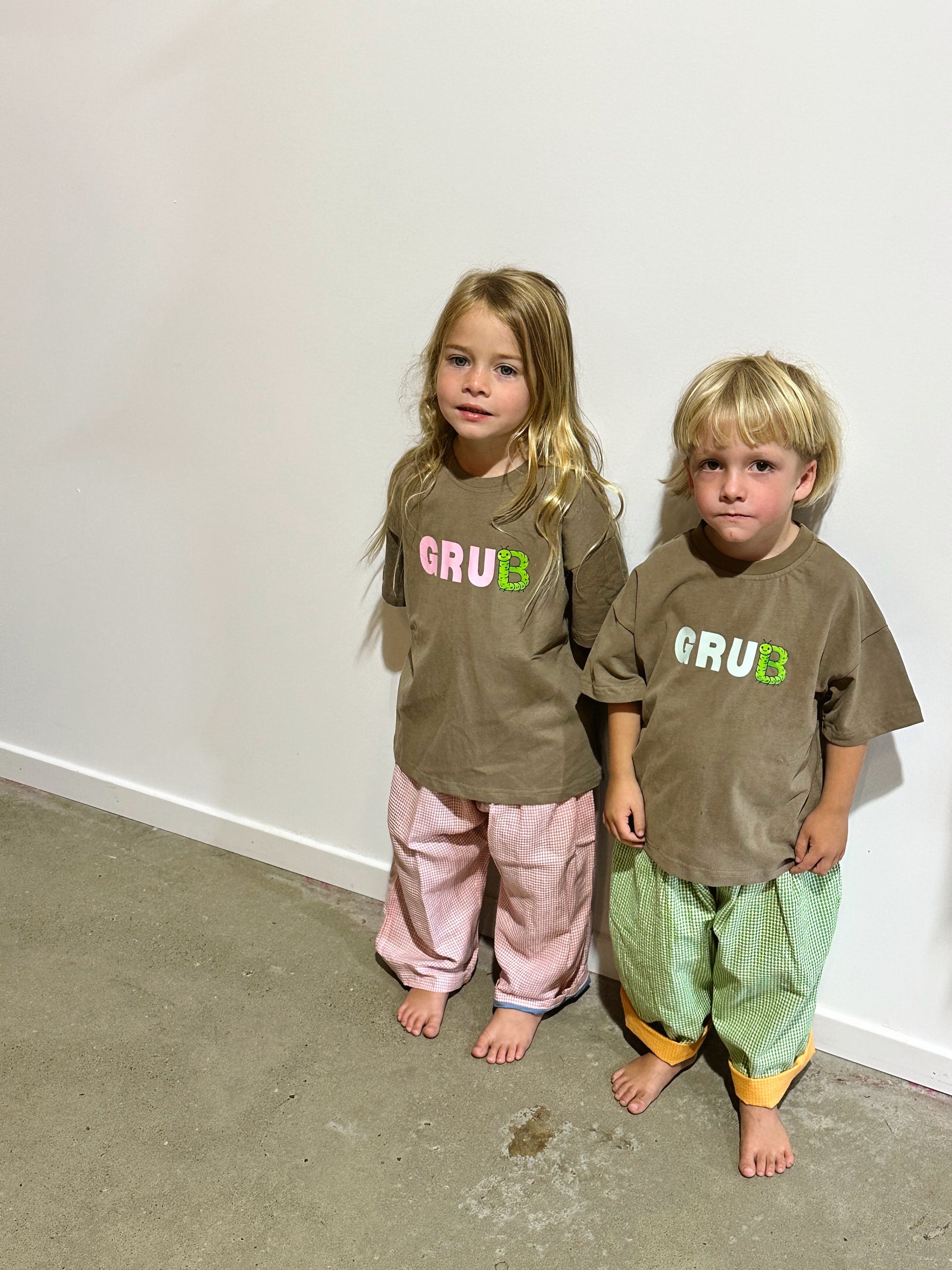 These oversized kids’ pants in cheerful green gingham are all about fun and functionality. With a nod to Trolli Sour Lolly Snakes, the vibrant orange lining adds a sweet surprise when the cuffs are rolled—perfect for a playful pop of colour. Designed to be true-to-size with an intentionally oversized fit, they’re roomy enough for growth, comfort, and plenty of wriggling around. Ideal for everyday adventures, with a charming twist kids (and parents) will love.
