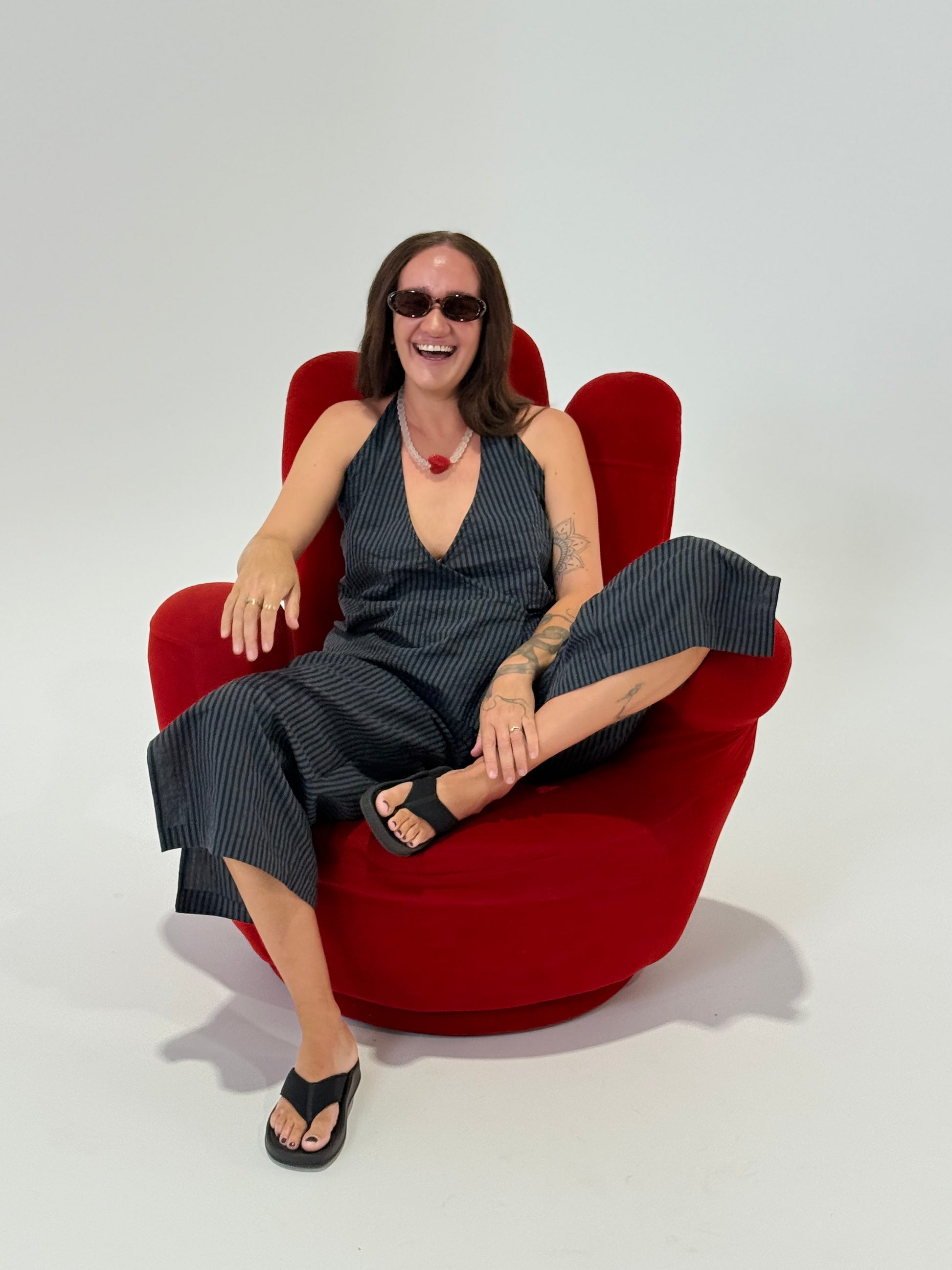 The sold out Wrap Top is back in Charcoal Stripe! It's your statement-but-still-effortless piece for the season. It wraps cleanly across the body and secures with soft cotton ties at the side for an adjustable, flattering fit. The neckline is lightly elasticated for comfort and ease, giving it that relaxed, lived-in feel without losing shape. Pair it with denim, linen, or the matching pants - it’s the kind of top that makes a simple outfit look intentionally put together.